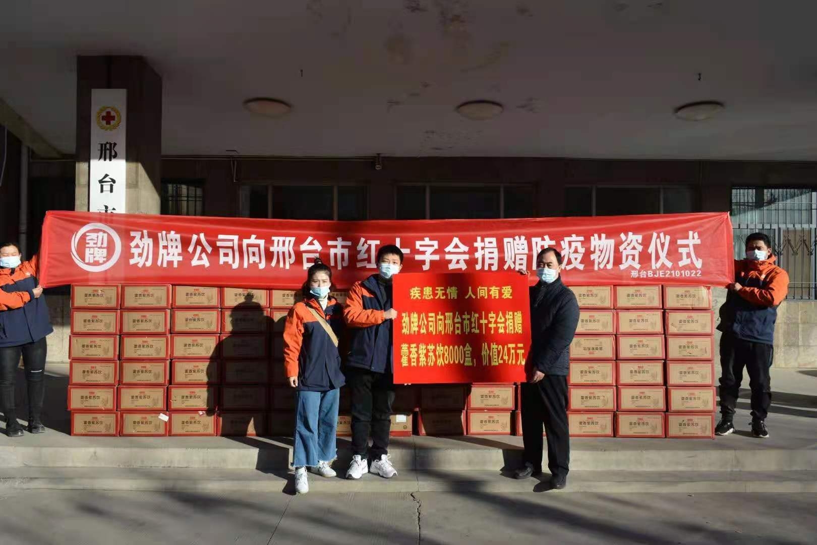昨日,河北省邢臺市收到了勁牌持正堂委托邢臺紅十字會捐贈的8000盒,總價值達24萬元的藿香紫蘇飲。